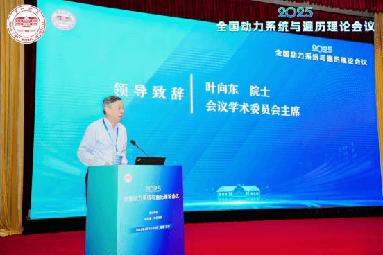 会议学术委员会主席、中国科学院院士、中国科学技术大学叶向东教授致辞,感谢组委会对本此大会所作的精心准备,他高度肯定了动力系统与遍历理论在数学研究中的核心地位,并展望了动力系统与遍历理论未来的发展方向。