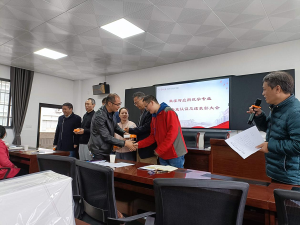 为总结认证经验,部署改进工作,表彰先进,凝聚人心,11月9日14时,伟德国际1946在玉衡北305室召开数学与应用数学师范类专业认证总结表彰会,学院全体党政领导及教师参会。会议由学院党委书记曾玉华主持。