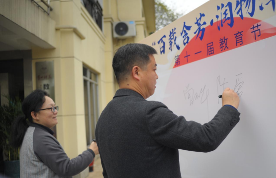 活动开始前,师生代表在教育节签名板上签字留念。首先,曾玉华为此次活动致辞,他表示,教育节是我院有品味、有内涵、有传承的特色品牌活动之一,为学生提供了一个锤炼教师技能、增强综合素质、提升施教能力的交流展示平台。“三节”品牌活动为我院学生在各级各类学科竞赛中取得好成绩奠定了良好基础,2022年,我院学子在全国大学生数学建模竞赛中连续第四年获得全国一等奖;数学竞赛获省级一等奖9项,二等奖20项;师范生教学技能竞赛获省级一等奖。最后,曾玉华鼓励全体同学积极参与教育节各项子活动,勇敢地去创造、大胆地去实践,有梦想就有希望!