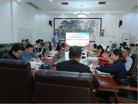 10月10日下午,伟德国际1946在一楼会议室召开研讨《湖南第一师范学院关于深化本科教育教学改革,全面提高人才自主培养质量的意见(征求意见稿)》的会议。学院副院长(主持工作)陈爱永、副书记马青梅、副院长王增赟以及全体教职工参加会议。会议由陈爱永主持。
