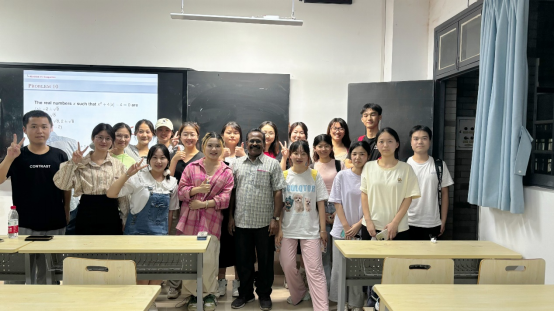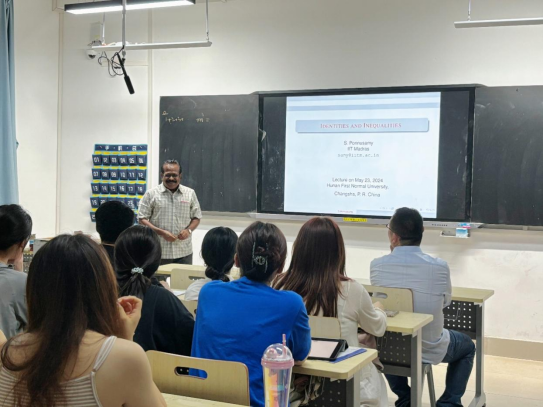 Ponnusamy教授选取了一些学生们感兴趣且用途比较广泛的恒等式和不等式进行交流,激发学生对数学的学习兴趣。报告中,学生们积极思考Ponnusamy教授提出的问题,主动回答,现场气氛活跃。报告结束后,Ponnusamy教授与学院师生进行了交流互动,并回答了为什么来到中国、为什么会对复分析研究感兴趣等问题进行了一一解答。最后,Ponnusamy教授为学生提供了一些富有价值的数学学习参考用书。