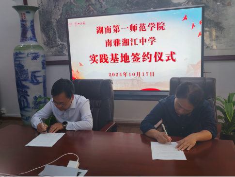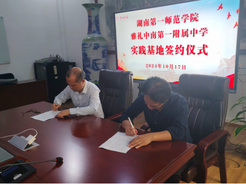 10月17日,湖南第一师范学院伟德国际1946与雅礼中南第一附属中学、南雅湘江中学实践基地签约仪式在学院一楼会议室举行。学院党委书记曾玉华、副院长王增赟、部分教师代表以及雅礼中南第一附属中学校长虢志宇、南雅湘江中学校长唐军出席签约仪式。