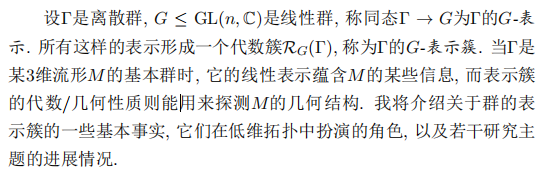 报告题目:群的线性表示及其在低维拓扑中的应用