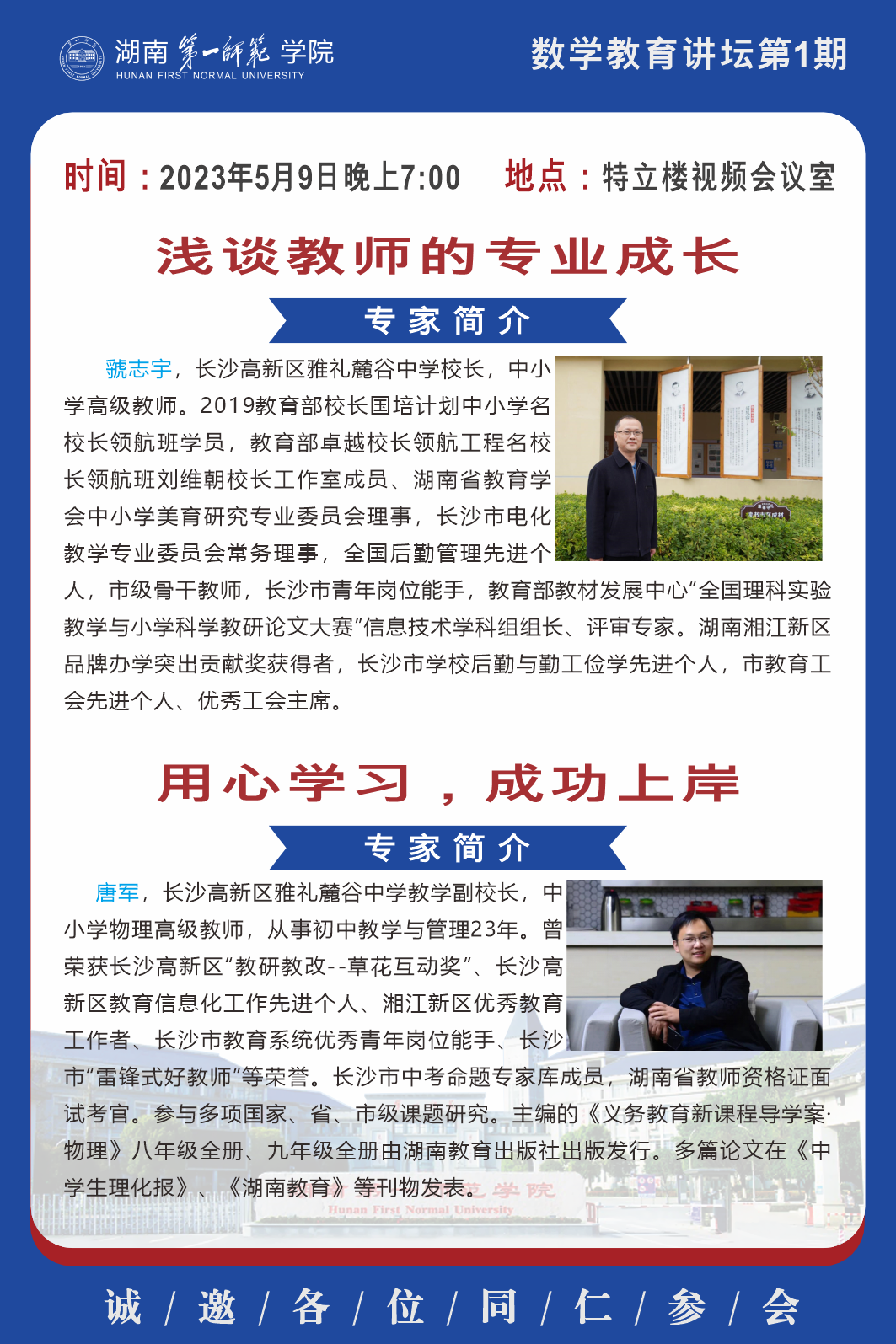 学术报告|数学教育讲坛第1期:浅谈教师的专业成长;用心学习 成功上岸