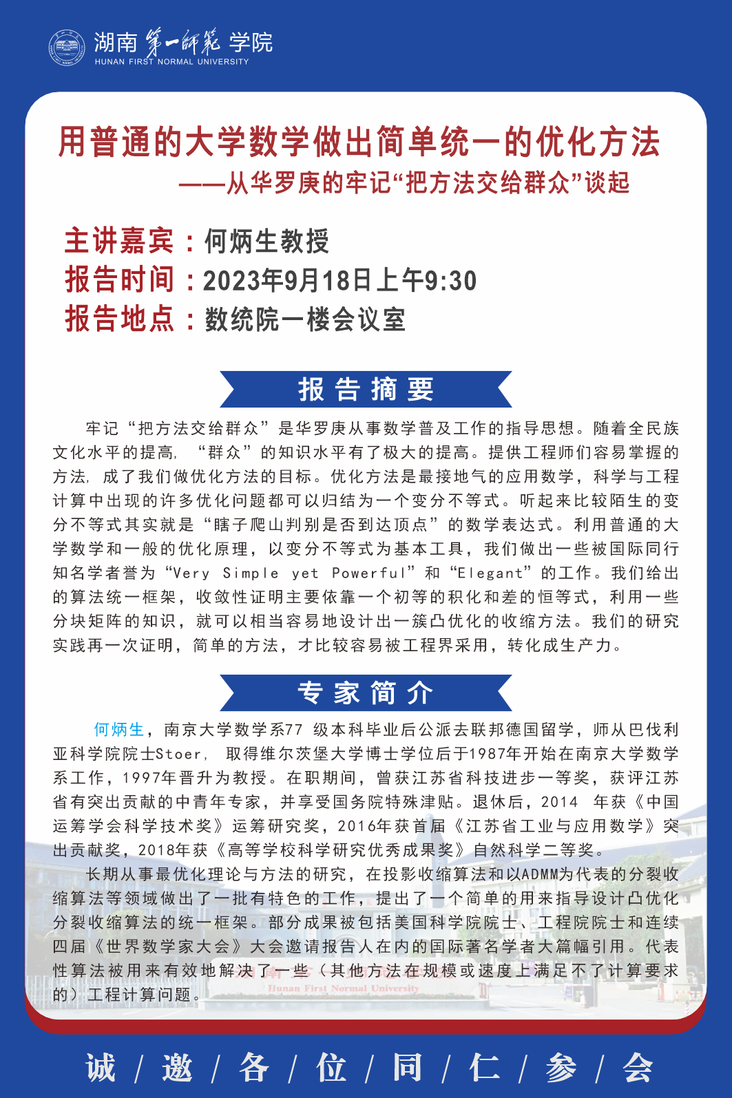 学术报告|数学高峰讲坛第19期:用普通的大学数学做出简单统一的优化方法
