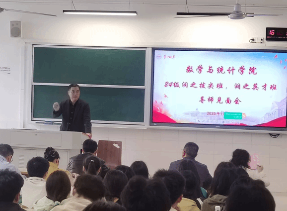 本次见面会特别邀请了来自福建师范大学挂职我院的邱志平副院长作为嘉宾。邱志平为在场师生带来了一场题为“数学卓越拔尖人才培养的探索与实践”的专题报告。他结合福建师范大学在拔尖创新人才培养方面的宝贵经验与成功模式,深入浅出地分享了数学学科卓越人才培养的理念、路径与方法,其前沿的视角和丰富的案例引发了同学们的深入思考,为大家开阔了学术视野,提供了宝贵的借鉴。
