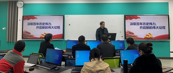 学院党委书记曾玉华做了题为《汲取百年历史伟力,开启新的伟大征程》的专题党课。曾书记的党课由前言和正文两部分组成,前言部分主要介绍了中国共产党第十九届六中全会召开的一些基本情况,正文部分主要宣讲了十九届六中全会精神的主要内容,具体从以下几个方面进行:审议通过2个文件,总结重大成就和历史经验的3个“需要”,马克思主义中国化的3次飞跃,百年历程创造的4个伟大成就,党的百年奋斗的5大历史意义,党的百年奋斗的10大历史经验,党的十八大以来13方面的重要成就,全党4个必须,党中央的1个号召。曾书记的这次党课,言简意赅,生动形象,重点突出,让我们全面而深刻地了解和掌握了党十九届六中全会的主要精神,更加坚定了我们共产党员不忘初心的使命担当。