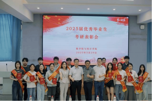 大会在庄严的国歌声中拉开帷幕。阮东彪发表讲话,对2025届考研学子取得的辉煌成绩给予高度赞赏。41名同学成功上岸国内外名校,考研录取率达31% ,其中51%的学子考入海外名校、港澳名校及国内985、211专业高校。他表示,这不仅是同学们努力的成果,更是学院深耕育人理念的生动体现。同时,他强调学院始终贯彻以学生为中心的办学理念,优化课程体系、开展考研指导讲座、举办学术交流活动、建立一对一导师帮扶机制等教学改革、考研指导、学风建设方面的全方位培育体系。