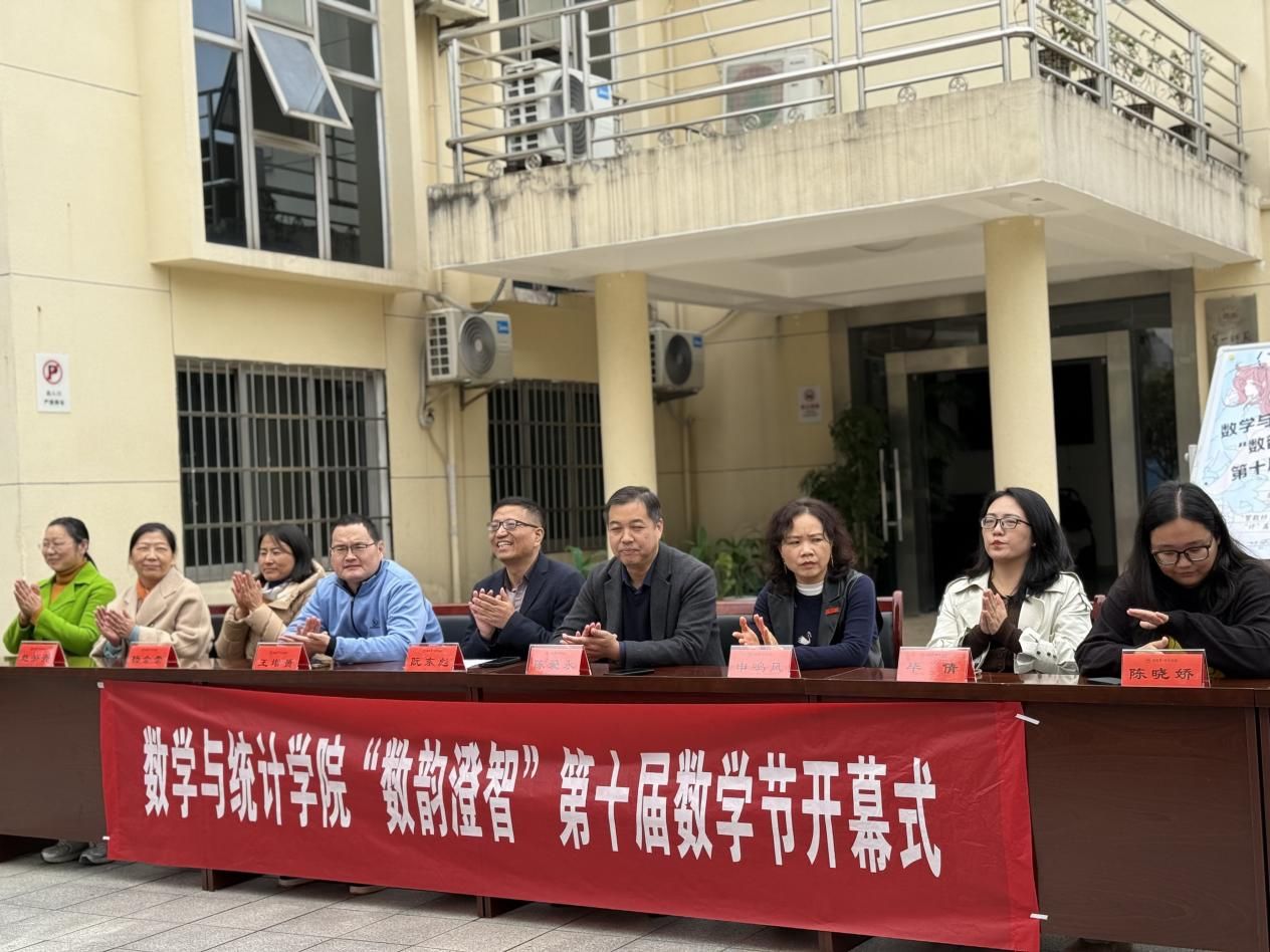 11月24日中午,伟德国际1946第十届“数韵澄智”数学节开幕式在学院行政楼前坪隆重举行。学院党委书记阮东彪、院长陈爱永、党委副书记申鸣凤、副院长王增赟、综合办主任杨会崇、教科办主任赵秀清、学工办副主任毕倩、团委书记彭晨嘉、教科办老师林敏、学工办老师陈晓娇,以及百余名学生代表共同出席,一起迎接这场一年一度的学术与文化盛会。