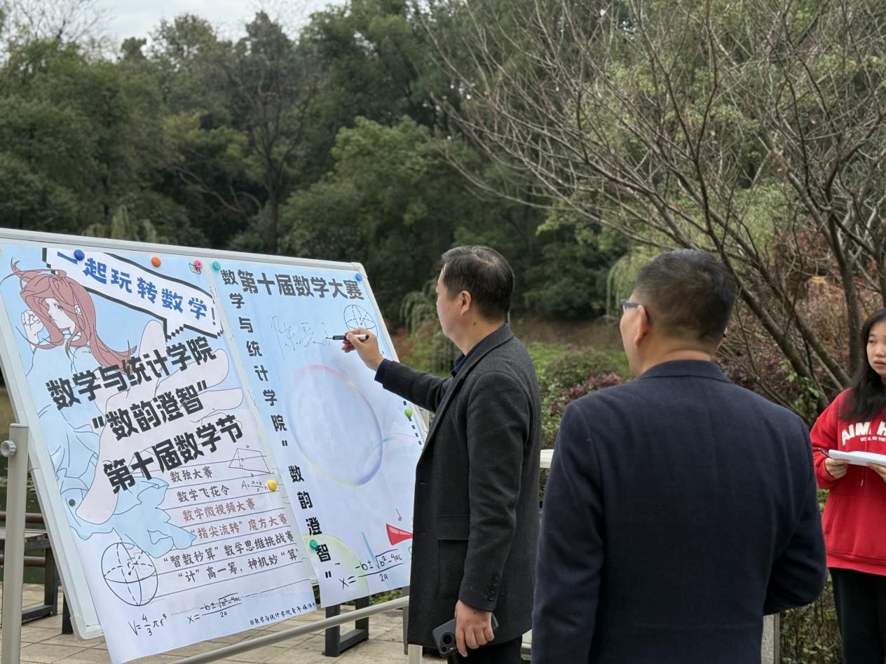 开幕式的最后,与会领导共同在签名板上签名,并与学生代表合影留念,为本届数学节留下了温暖的瞬间。在全体师生的共同见证下,第十届数学节系列活动正式拉开序幕。期待同学们在接下来的各项活动中,尽情探索数学之美,领略思维之妙,在公式与灵感之间,感受数学独有的深邃与浪漫。