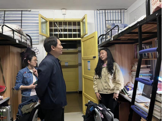 书记下寝 | 求真学问 、练真本领 发布时间:2023-04-13 作者: 浏览次数:次 4月12日晚,伟德国际1946党委书记曾玉华带领学工办马青梅,班主任马玲玲深入晚自习教室和学生宿舍,勉励同学们要做奋斗者,求真学问 ,练真本领,争做现代化国家需要的复合型人才。同时也叮嘱同学们春季要注意地面防潮防滑,坚持寝室卫生日常打扫,每天保持寝室30分钟通风,加强自身身体锻炼,预防各类传染性疾病。
