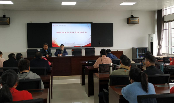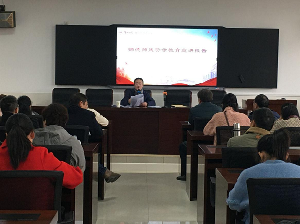 蒋莉副部长就驻省教育厅纪检监察组编印下发的《2017年以来全省高校违纪违法典型案例警示录》进行师德师风教育宣讲,结合违法违纪典型案例给我院全体教师开展了警示教育,并提出三点要求:一是要以案为鉴,以案为警,以案明纪。要从典型案例中汲取教训,恪守底线,做到警钟长鸣常自省;二是要主动学习,内化于心。要深入学习《湖南省师德师风教育读本》及有关文件精神,把握师德师风标准,增强思想自觉和行动自觉;三是要提高政治站位,强化政治意识。要筑牢意识形态主阵地,增强政治自觉,共建完备的师德师风建设长效机制。