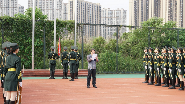 仪式结束,18级775数学班何梦倩进行国旗下的演讲。她以“传承红色基因,逐梦星辰大海”为主题,回忆中国共产党最艰难的革命历程,呼吁在场青年学子从党的光辉历史中吸取力量,担负起新时代青年应有的责任和担当,锤炼品德、勇于创新、实学实干,坚定不移传承红色基因,弘扬革命精神,为中华民族伟大复兴贡献青春力量。