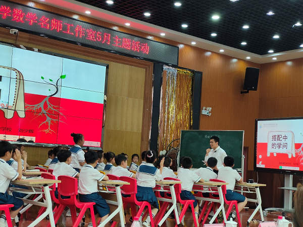 工作室的刘少辉老师执教《搭配》。他首先提问生活中哪些场景需要运用到搭配?解决问题之后刘老师引导学生总结:在匹配事物时,需要有条理,非重复且不丢失。因此,必须按照一定的顺序考虑这些问题,以便对它们进行全面考虑。刘老师通过引导学生观察三个问题的相同之处,对于搭配问题,可以使用符号法。在做中学的过程中,学生感受到了数学的魅力。