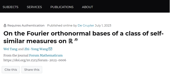 近日,湖南第一师范学院伟德国际1946教师唐微博士与王志勇博士合作在国际著名数学期刊《Forum Mathematicum》上发表题为“On the Fourier orthonormal bases of a class of self-similar measures on Rn的学术论文。